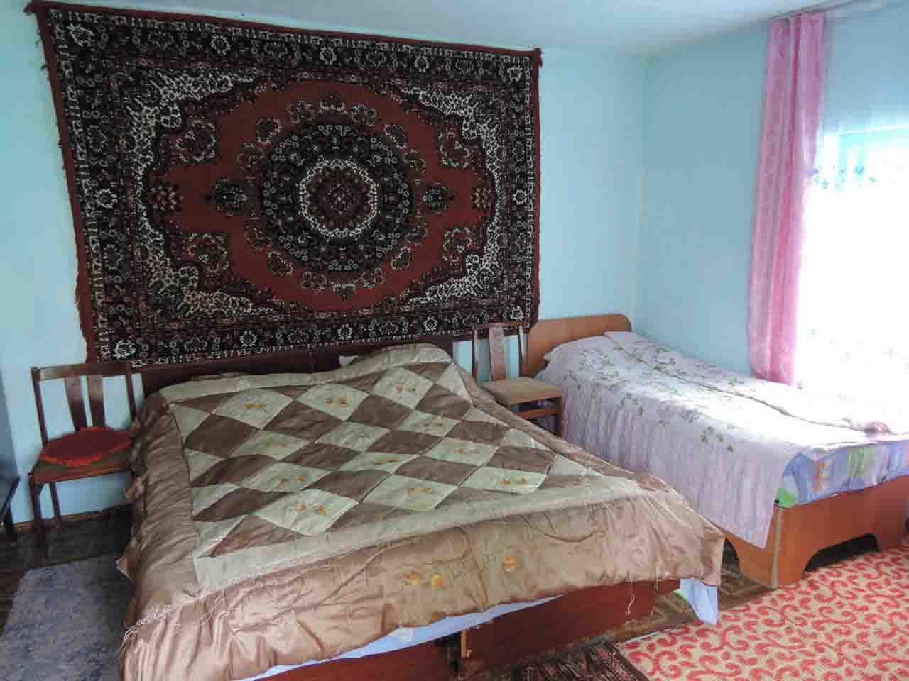 I have a large garden, full of flowers and fruit trees, and five bedrooms available for guests. The house just a few minutes by foot from Lake Issy-Kul in Tamga Bay.